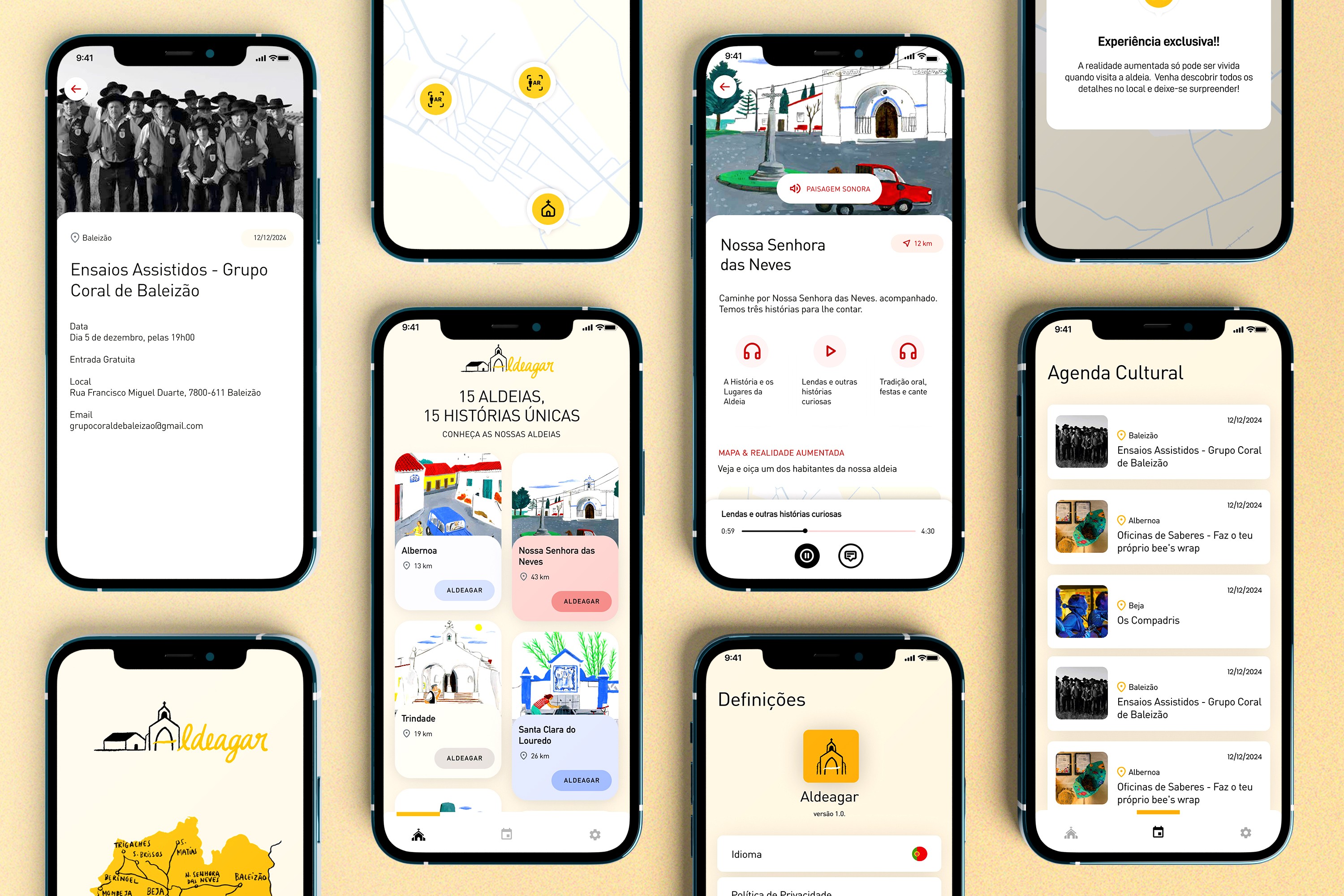 Aldeagar é uma aplicação mobile criada para explorar o território rural de Beja através de histórias, sons e experiências imersivas. A app permite descobrir aldeias, aceder a narrativas locais e interagir com conteúdos em realidade aumentada, promovendo uma ligação mais profunda ao património cultural da região.